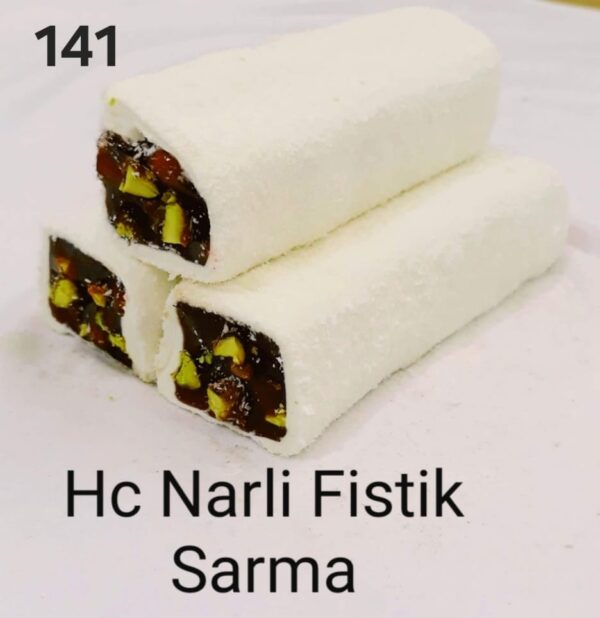 Dışı bembeyaz Hindistan cevizi kaplı, içi ise narın mayhoş lezzeti ve bol Antep fıstığının zengin dokusuyla dolu… ‘Hc Narlı Fıstık Sarma’, yumuşacık dış katmanı ve yoğun iç dolgusuyla tatlı ile mayhoşun mükemmel dengesini sunuyor.