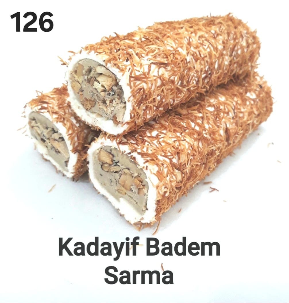 Dışı çıtır çıtır kavrulmuş tel kadayıf, içi bol badem parçacıklarıyla dolu zengin bir harç… ‘Kadayif Badem Sarma’, yumuşacık bir lokum katmanıyla sarılmış, her lokmada çıtırtıyı ve yoğun badem lezzetini bir arada sunuyor.