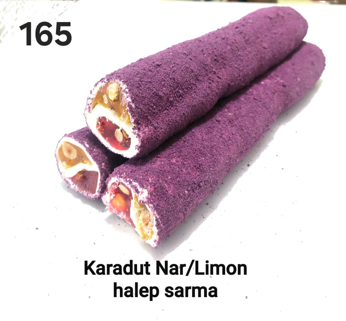 Üç meyve lezzeti bir arada! Karadutun yoğun aroması, narın mayhoşluğu ve limonun ferahlığı… Dışı kadifemsi karadut kaplı bu ‘Halep Sarma’, içindeki bütün fındık taneleriyle zenginleşen, kat kat bir lezzet şöleni.