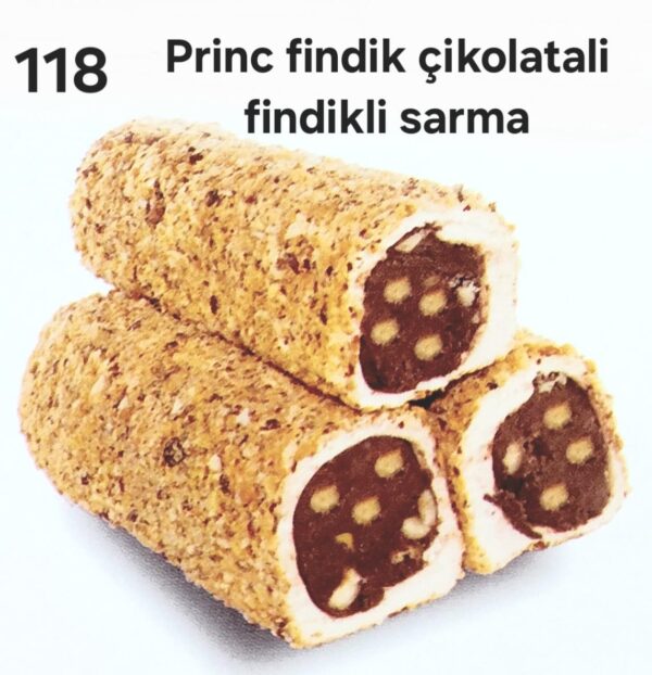 Çikolata ve fındık aşkı bu sarmada buluştu! Dışı çıtır pirinç fındık kaplı, içi ise yoğun çikolata dolgusu ve bütün fındık taneleriyle dolu. ‘Pirinç Fındık Çikolatalı Fındıklı Sarma’, her lokmada mutluluk veren zengin bir lezzet.