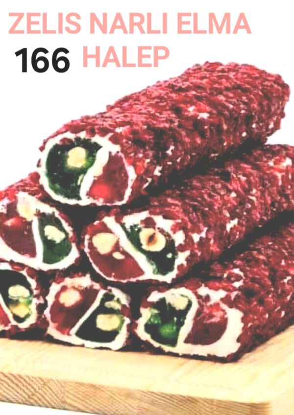 Narın mayhoş lezzeti elmanın ferahlığıyla buluştu! Dışı özel zeliş (nar tanecikleri) kaplamalı, içi yumuşacık sütlü katman ve bütün fındık taneleriyle zenginleşen ‘Zeliş Narlı Elma Halep’. Her lokmada çifte meyve lezzeti.